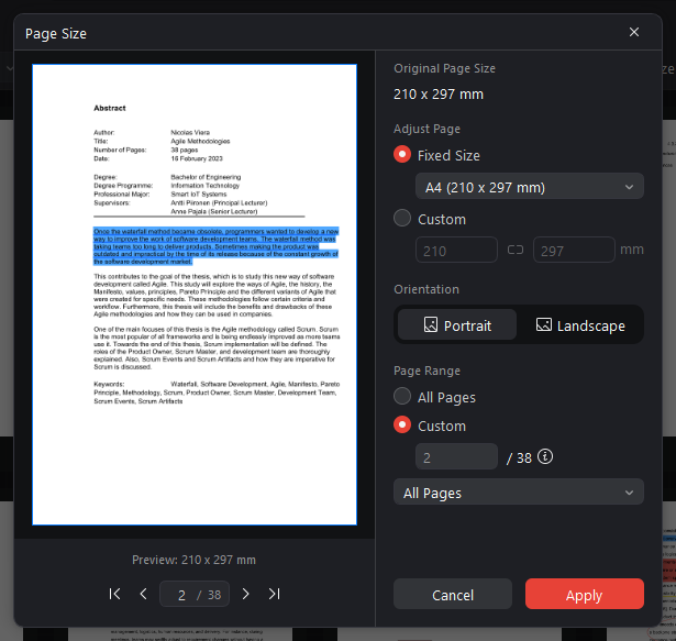 Tips for changing PDF page sizes